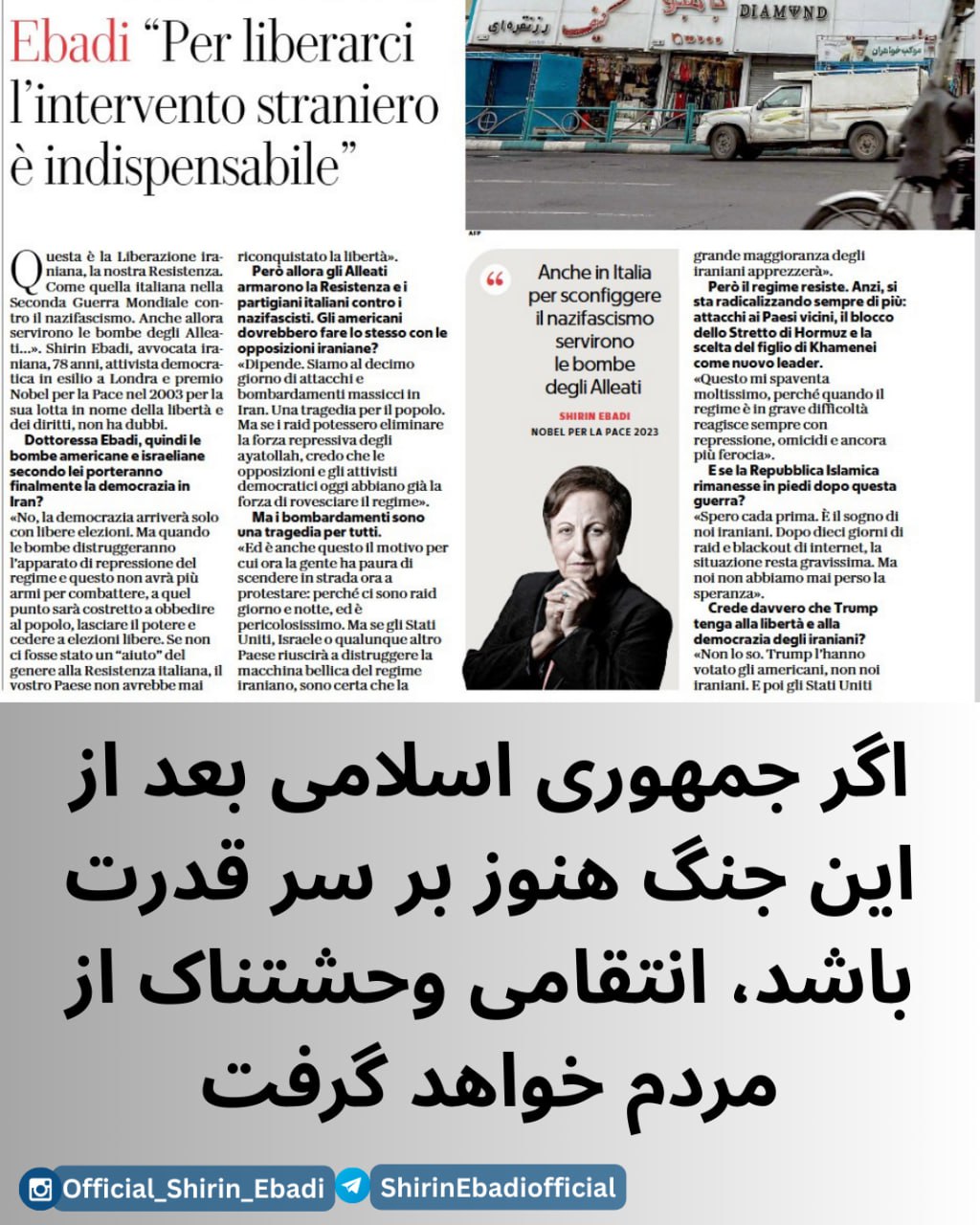 شیرین عبادی در گفتگو با روزنامه ایتالیایی La Republica